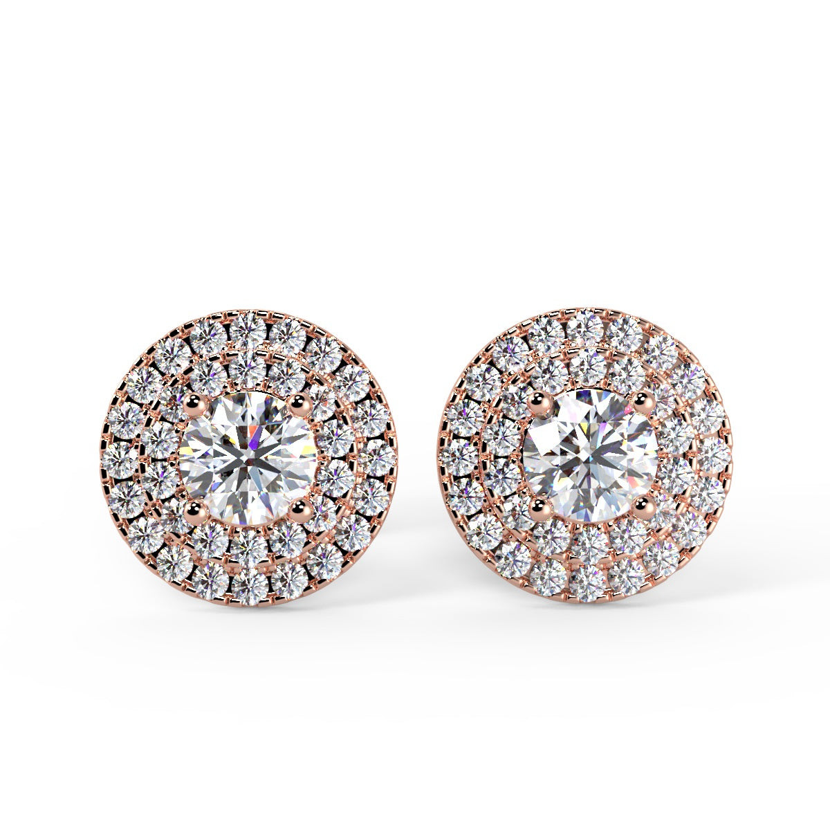 Exceptional White 0.60 Ct Round Diamond Double Halo Set Earrings,18k Gold